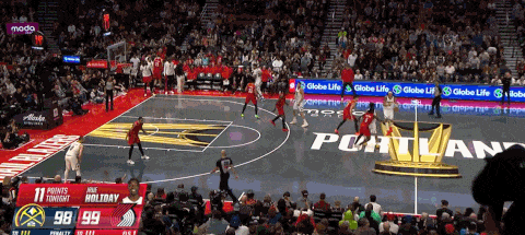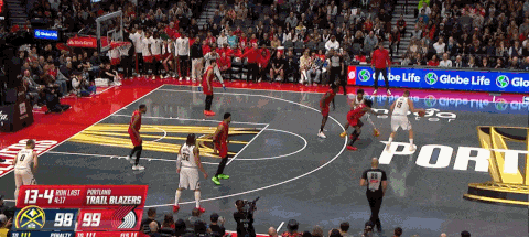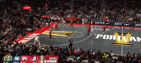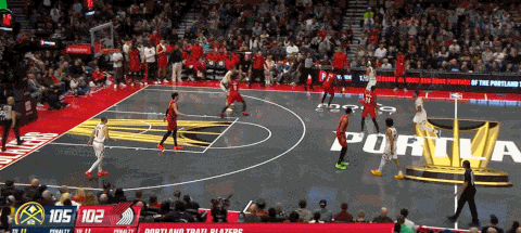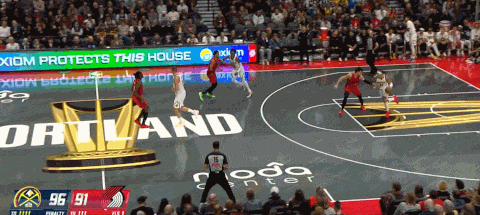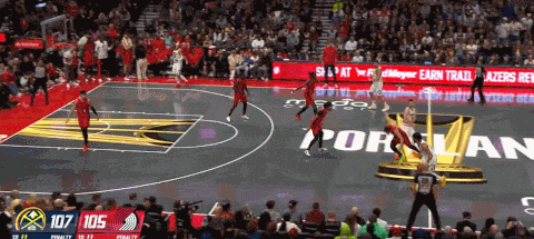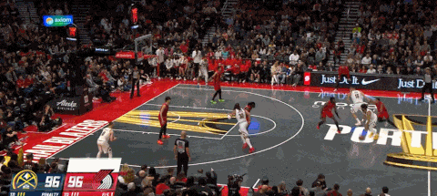 这一次掘金打了他们习惯的Ram掩护,再由约基奇和穆雷打弧顶的二人转,但开拓者始终限制着约基奇的接球路线,穆雷强行吊球又会被协防的阿芙迪亚干扰,出现失误。